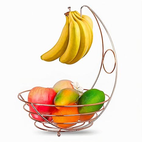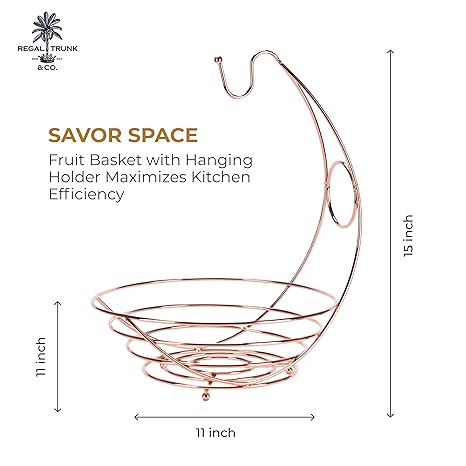 - THOUGHTFUL GIFT: This 15″x11″x11″ fruit basket for kitchen counter with a banana holder is a perfect blend of style and utility. It’s an ideal gift for housewarmings, weddings, or any special occasion
