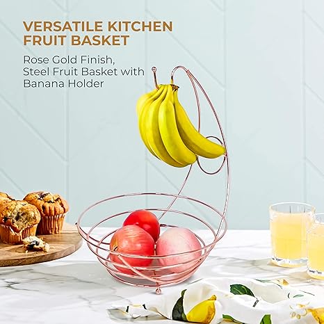 - MAXIMIZE YOUR KITCHEN SPACE: Enhance your kitchen aesthetics with our countertop fruit basket and under cabinet banana hook- a perfect solution for organizing fruits like bananas, freeing up your kitchen counter space