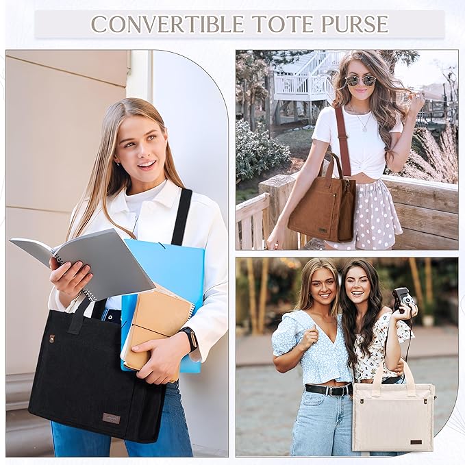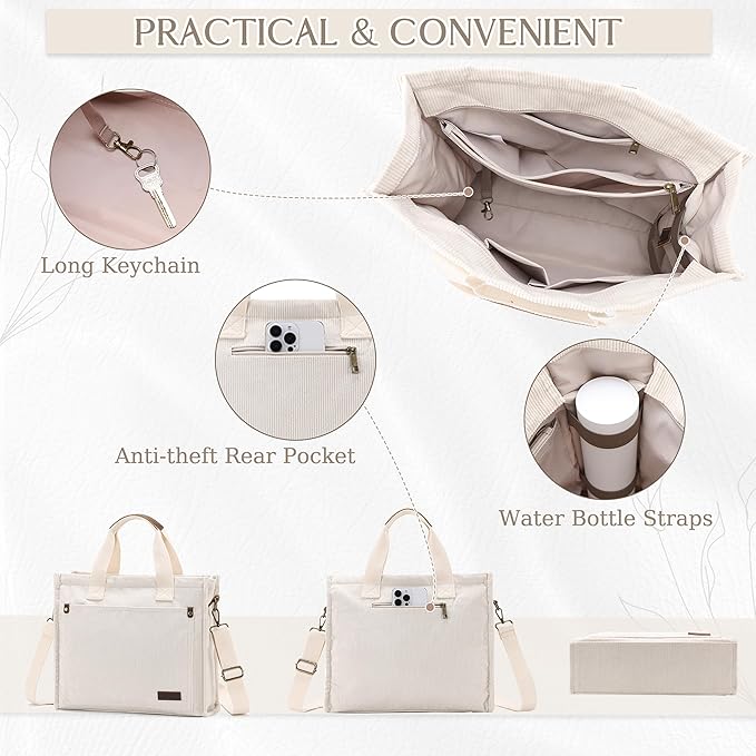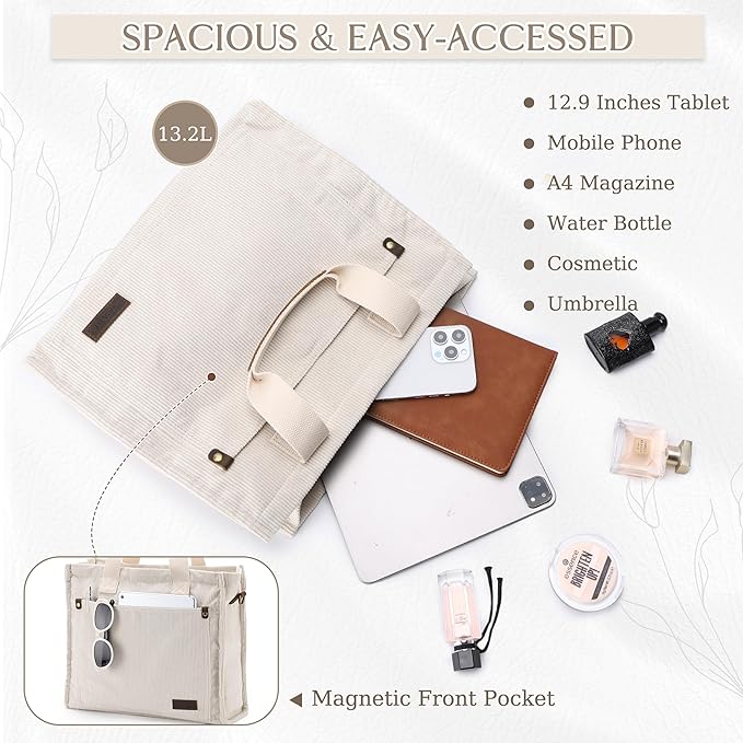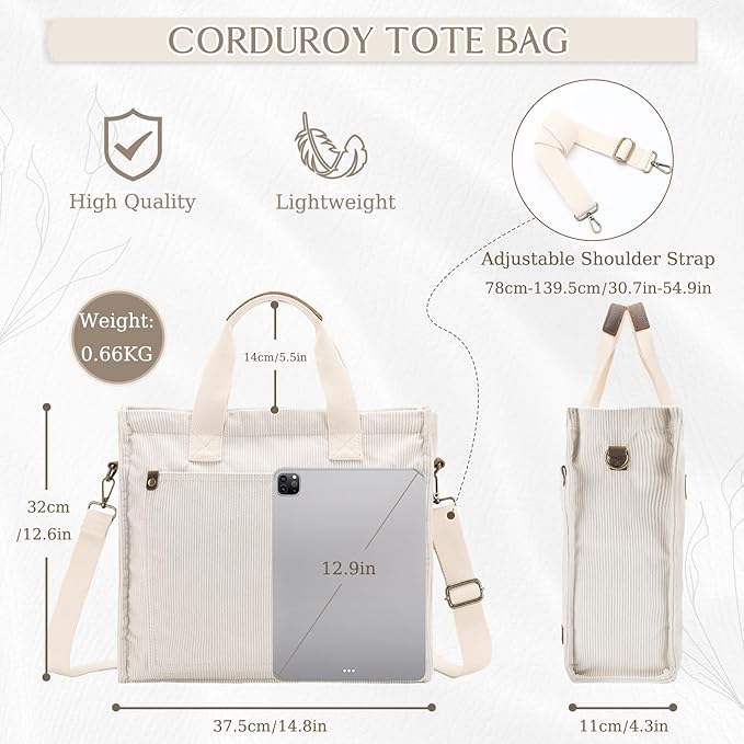 - ⭐CONVENIENT & CONVERTIBLE: The medium-sized tote bag is made from soft and durable corduroy, easily to convert from a top handle tote purse to a crossbody shoulder bag with the detachable strap.