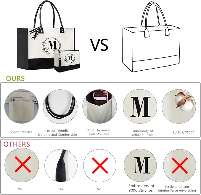 - Classic Monogram Embroidery Font & Personalized Gift: Each tote bag for women is individual using a high thread density monogram in a classic black font, allowing you to give your gift a personal touch. So the tote bag for women could be a perfect gift for women, brides, ladies, mother and friends. Also, the birthday Christmas Thanksgiving gift bag can be an adorable way to thank your bridesmaids, maid of honor, mother of the bride/groom, and guests.