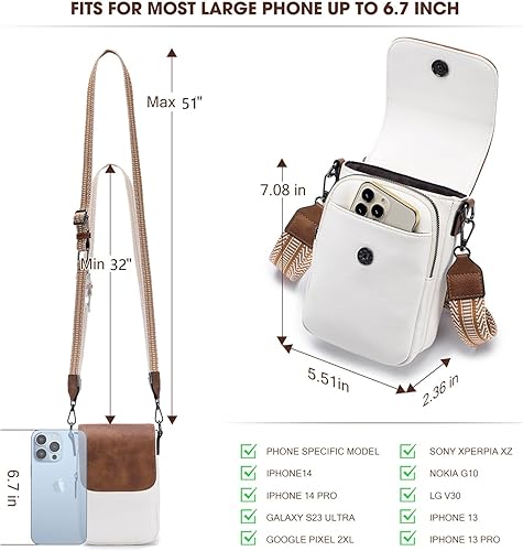 - Compact Size:Size:5.51″(L) x 2.36″(W) x 7.08″(H); Cell phone purse small size is ideal size to fit the smart mobile phones with a big screen of 6.7 inch and below. Come with unique adjustable & removable guitar strap; Adjustable shoulder strap length (32″ to 51″). Lightweight & Wide Strap aim to the comfortable to carry in each day. Small crossbody bag ideal option for outdoor use (walking,camping,shopping etc) and travel,daily life use as well
