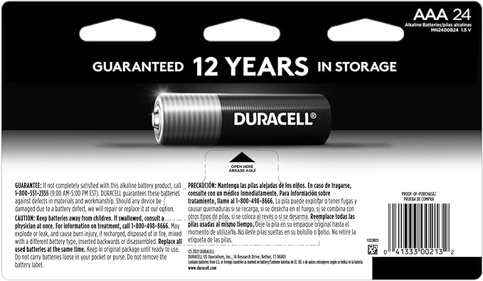 - GUARANTEED FOR 12 YEARS IN STORAGE: Duracell guarantees each Coppertop AAA alkaline battery to last 12 years in storage, so you can be confident these batteries will be ready when you need them