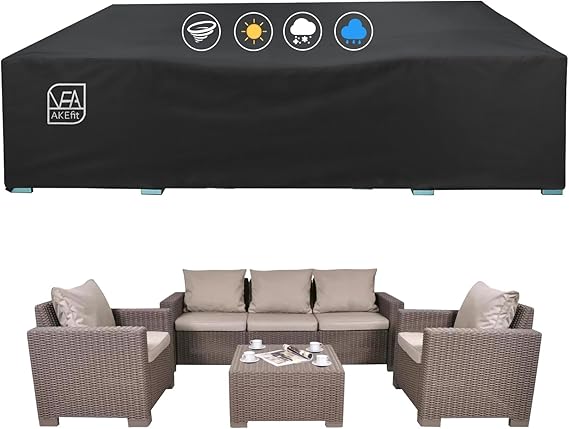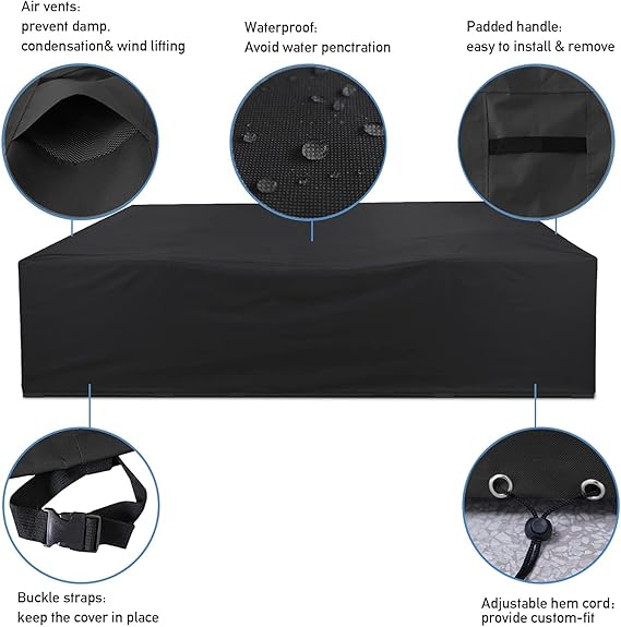 - 【Universal Size】 This patio furniture set cover size is 110″L x 84″W x 28″H, suitable for many kinds of outdoor patio furniture like tables and chair set, sectional sofa and other square furniture. Note: Please measure the dimensions of your furniture set carefully before purchasing.