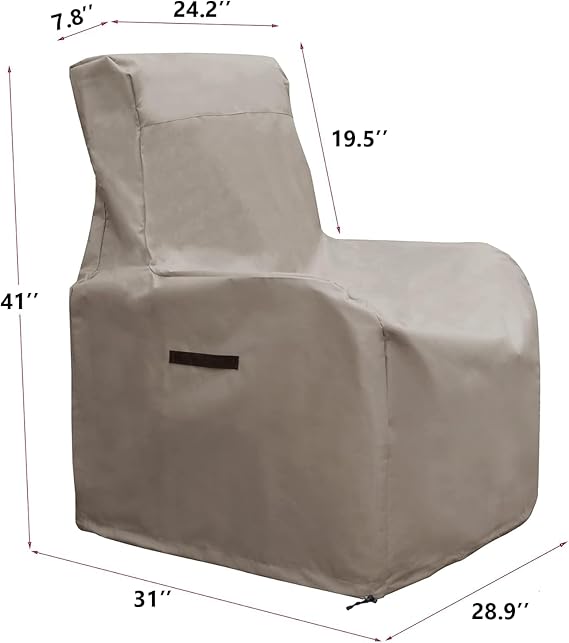• Patio Chair Cover: The patio chair cover measures 32”D x 32”W x 40.5”H, for a better fit, it is best to choose a cover that is 1-2 inches larger than your chair. Please measure your patio chair before purchase