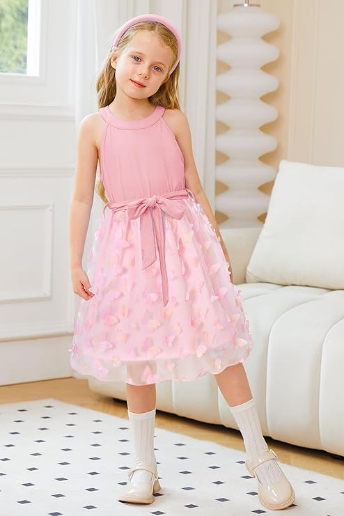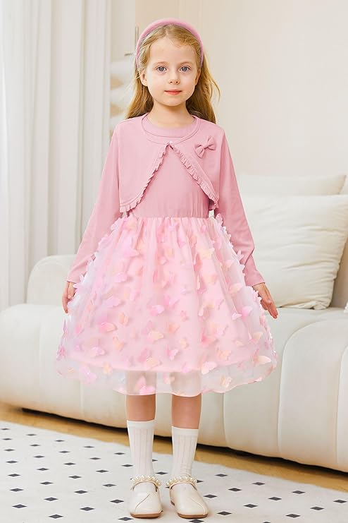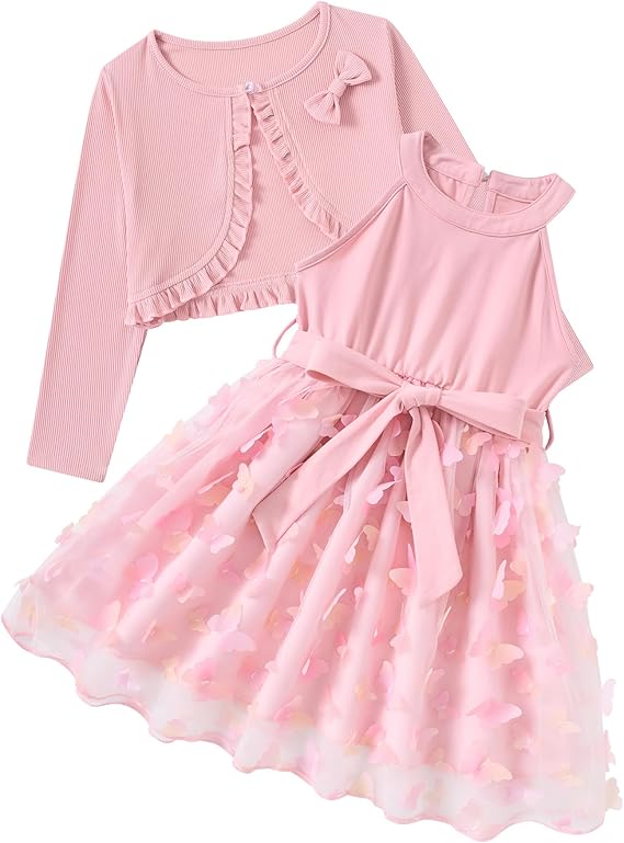 - Girl’s 2-piece Outfit: The halter tulle dress and long-sleeve cardigan, solid color design with butterflies applique, the girls’ dress sets are fancy and trendy