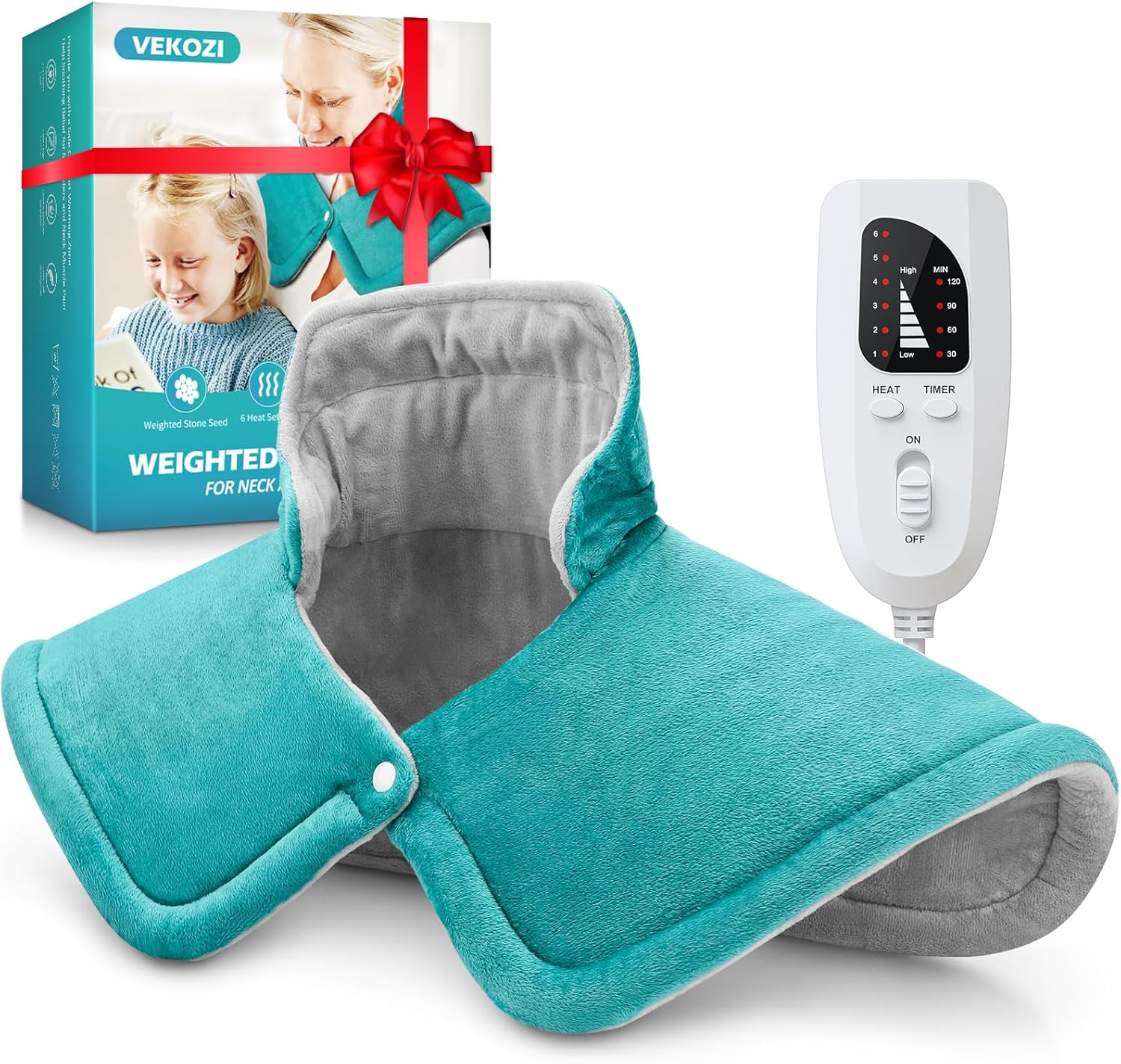 Heating Pad for Neck and Shoulders and Back, Christmas Birthday Gifts for Women Mom Mother, Weighted Neck Heating Pad for Back Pain Relief, Heating Pads Large, 6 Heat Settings 4 Auto-Off,17″x23″ Blue