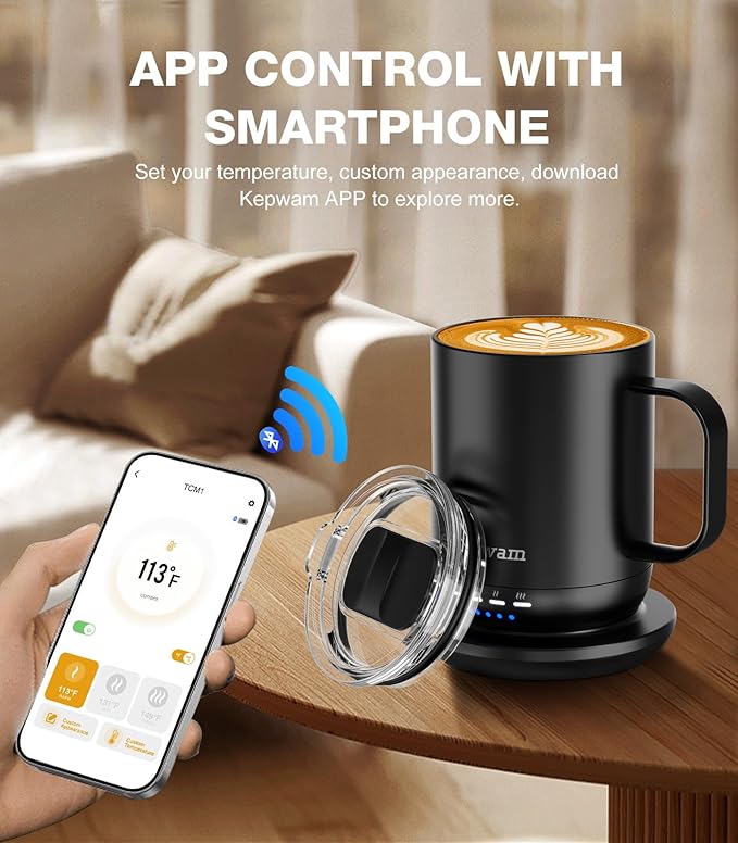 - 2024 Upgrade Smart Mug – Kepwam self-heating smart mug will elevate your hot beverage experience. Simply choose lukewarm (113°F), hot (131°F), or piping hot (149°F) and enjoy for hours. The included sliding lid keeps your drink warm for longer and prevents spills.