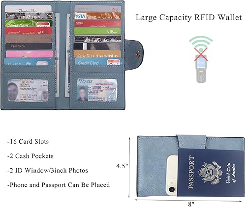 - ❀Matching Wallet clutch–dimension:8”x4.5”x0.5”;RFID Blocking can protect personal information;16 cards slot, 2 ID card window (driver license or families’ photo);even place Small amounts of cash, mobile phones, etc (wallet can be put into the medium crossbody bag).