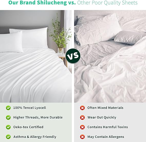 - 【Luxury Feel】The fabric of our sheets is made of Austrian Imported Lenzing Tencel, which is smoother, more breathable, and absorbs moisture faster than ordinary tencel sheets.With our Shilucheng sheets, you will get enough luxurious coolness and smooth touch. Believe me, you will definitely love these sheets. We like to describe their texture as between soft cotton and smooth silk, perfect.