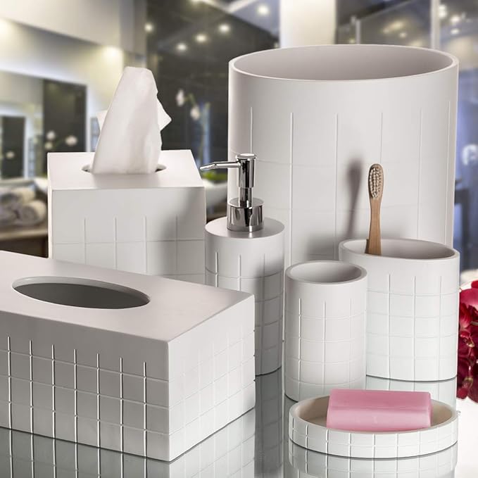 - Matching Bathroom Set – Tissue Box Holder Complements Our Complete Line of Bath Accessories; Pair w/Matching Wastebasket, Bathroom Set, Etc.