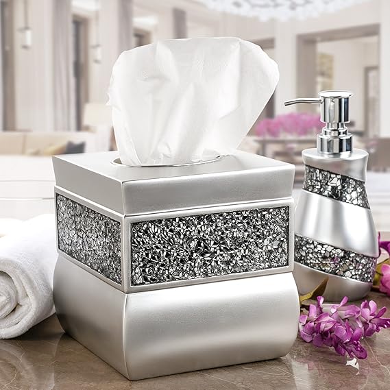 - Matching Bathroom Set: Square Tissue Box Cover For Tissue Paper Complements Our Complete Line Of Bathroom Accessories Collection, Pair W/Matching Wastebasket, Toothbrush Holder, Etc. Which Makes It A Great Gift For Your Beloved One! Click Add To Cart Now!