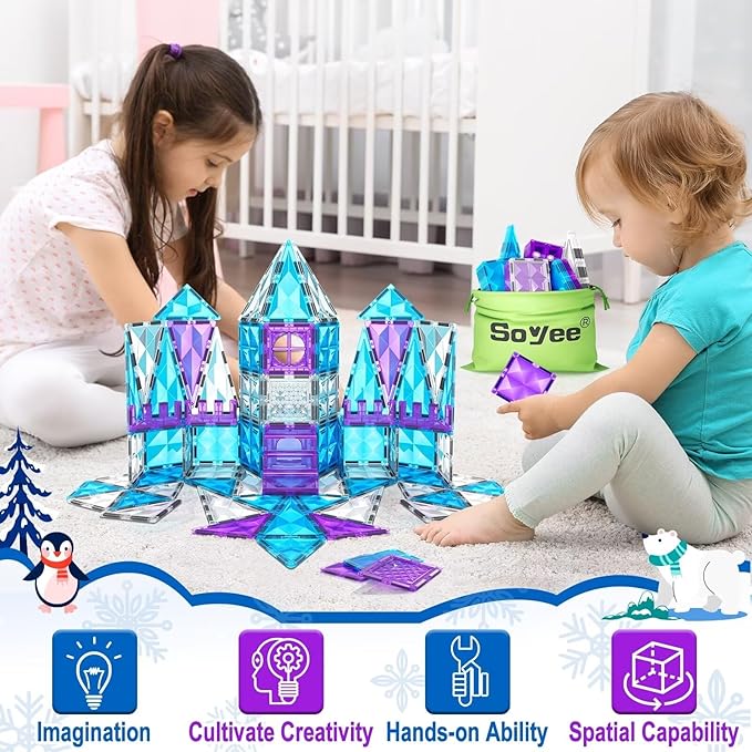 - Frozen Castle Building Toys: The 102pcs Frozen magnetic tiles meet fairy-tale designs, the magnetic blocks shine like diamonds and can refract bright light and shadow, dive into a glittering world of play with our Diamond Frozen Magnets!