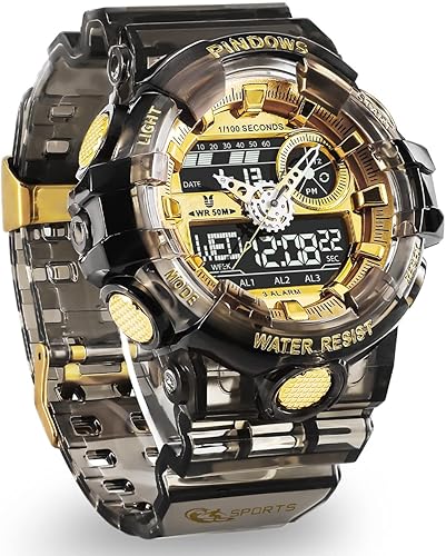 - ★【High-Brightness & Comfortable 】The high-brightness backlight design and the dial window adopts acrylic mirror surface with high transparency, Make the appearance more cool and customers to have a clear reading experience. The case and strap are made of high-quality rubber and resin,comfortable to wear.