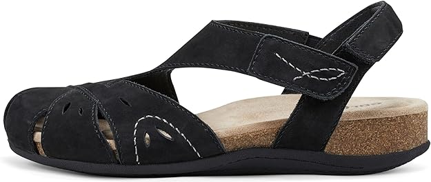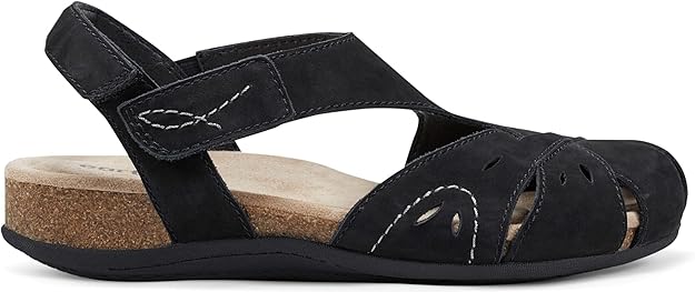 - Premium leather upper in a closed toe sandal style